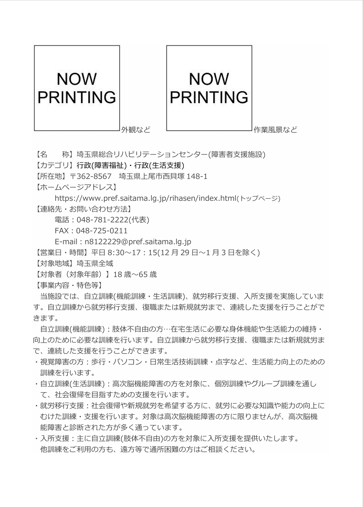 埼玉県総合リハビリテーションセンター(障害者支援施設) 詳細