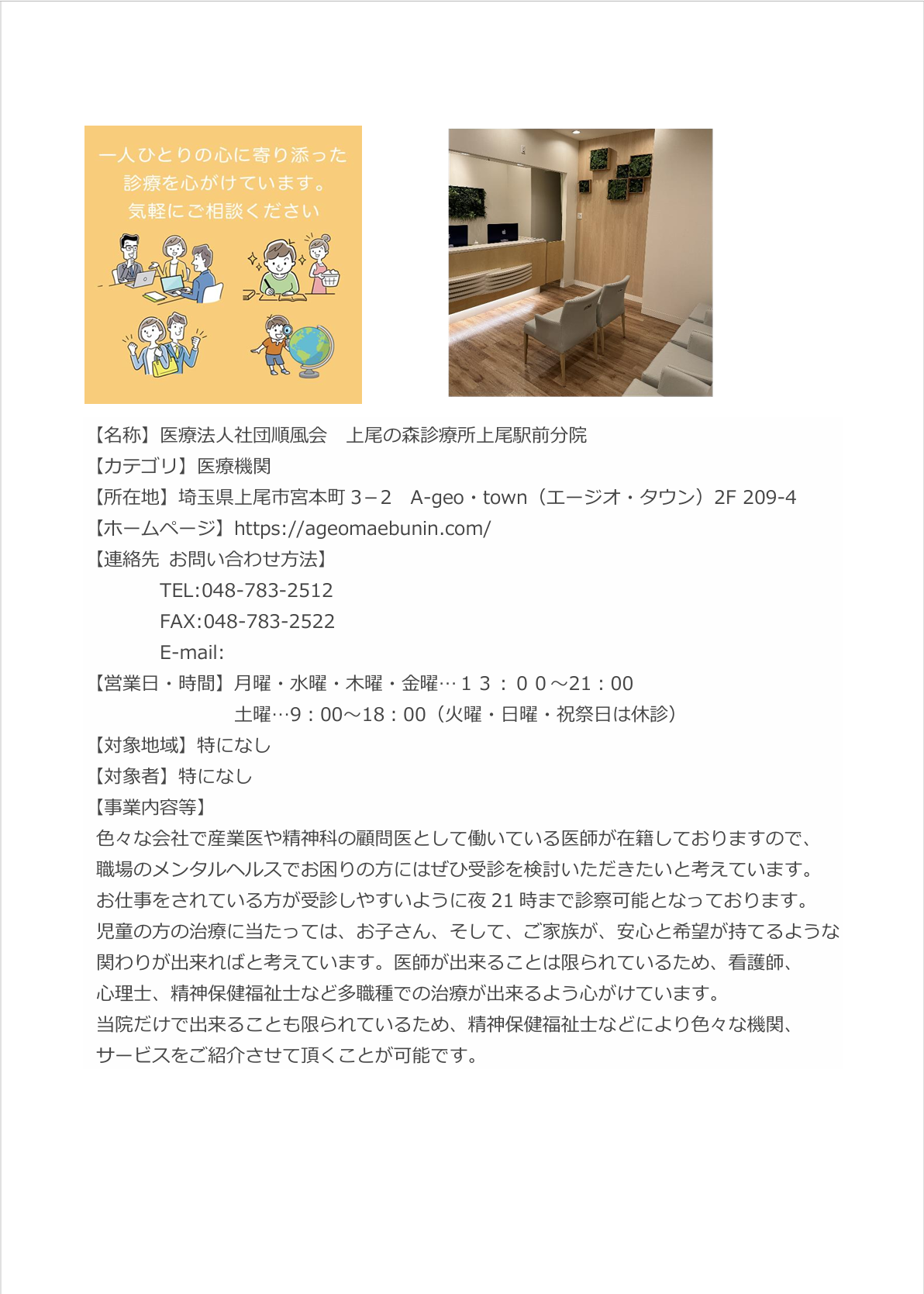 上尾の森診療所 駅前 詳細