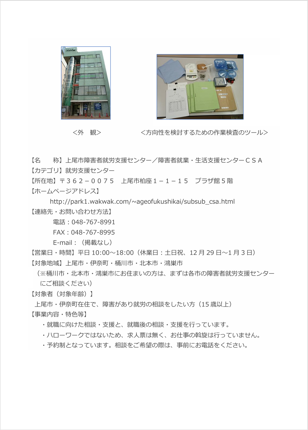 上尾市障害者就労支援センター 詳細