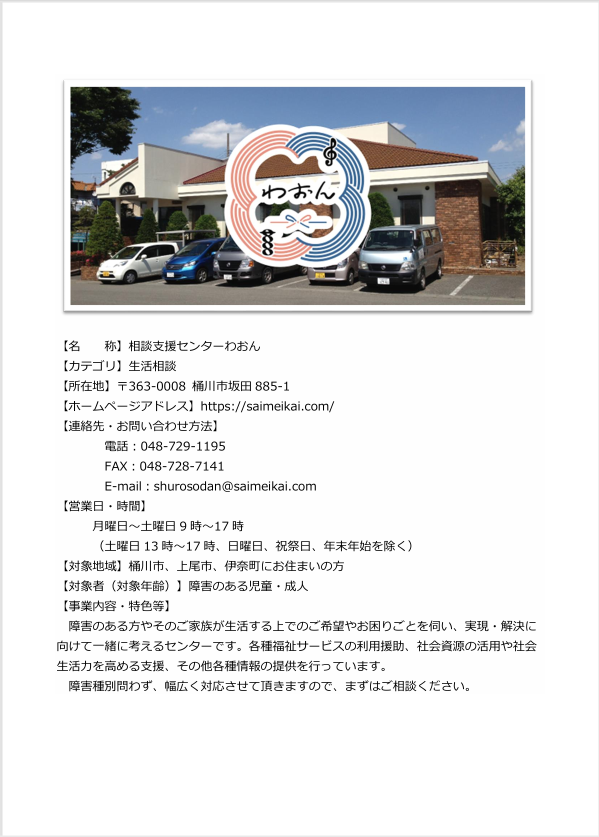 相談支援センターわおん(生活相談) 詳細